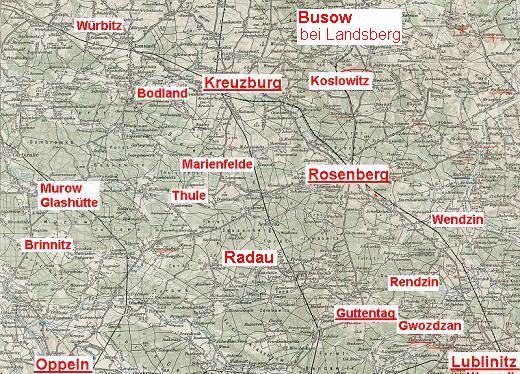 Schreiberau (zwei Hütten), Wiesau, Freudenberg, Kaiserswalde, Leschzin, evtl. Mokrau und Myslowitz.